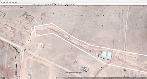 Google Earth Pro | غياب المتارس في السواتر الترابية جنوب غرب قاعدة التنف (18 يونيو، 2022)