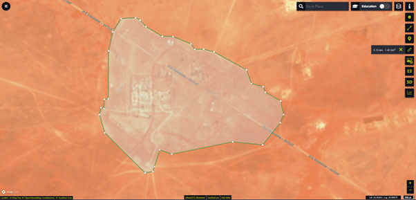 Google Earth Pro | صور من يونيو ٢٠٢٢ للمساحات غير المستغلة شرق القاعدة قبل بناء الحظائر