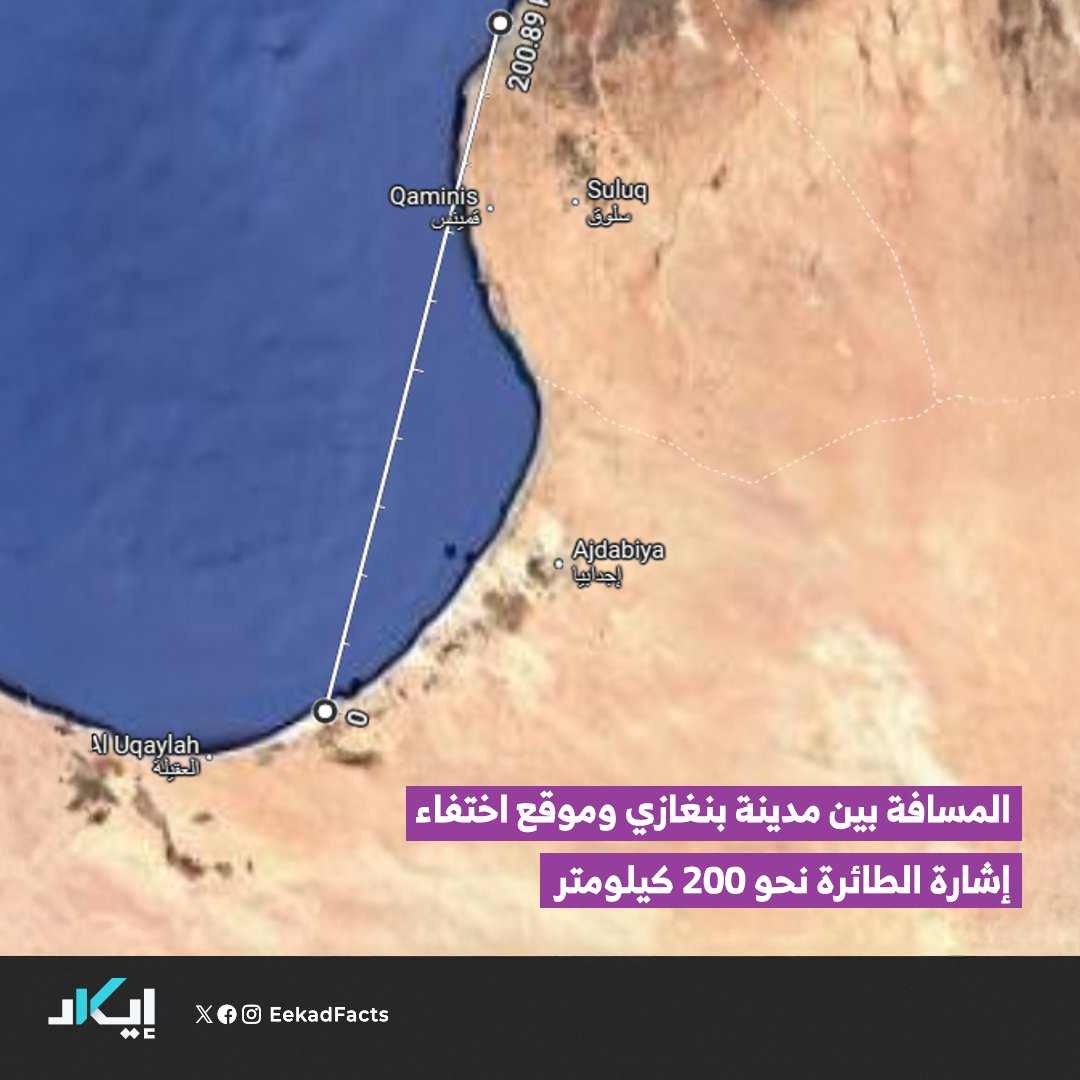🔻وبعد ساعة من هبوطها في سبها، ظهرت الطائرة نفسها في الأجواء الليبية متجهة إلى بنغازي مرة أخرى.