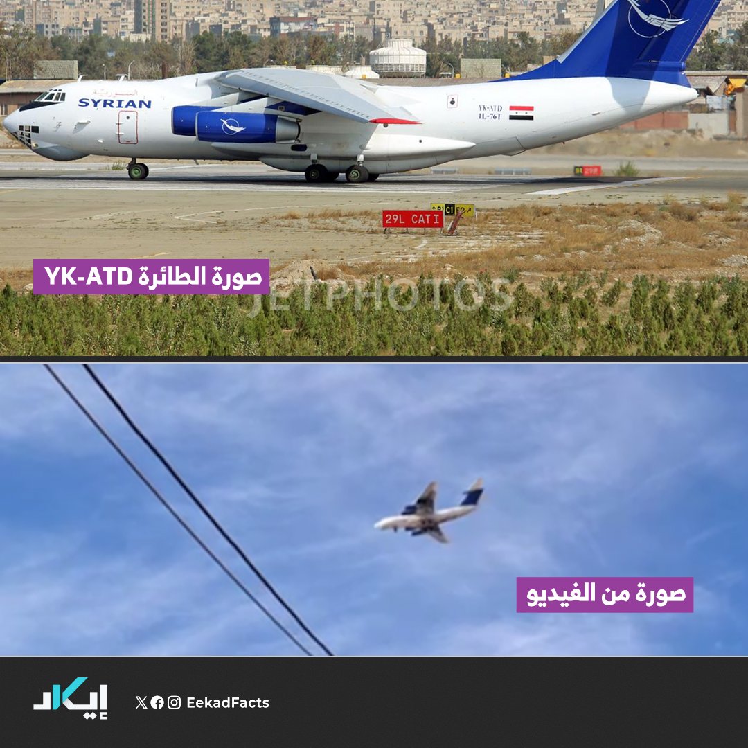 ⬅️الطائرة الثانية “YK-ATA” يرجّح أن الأسد هرب بها إلى قاعدة حميميم في 8 ديسمبر، ولا تزال في موقعها حتى كتابة هذه السطور.