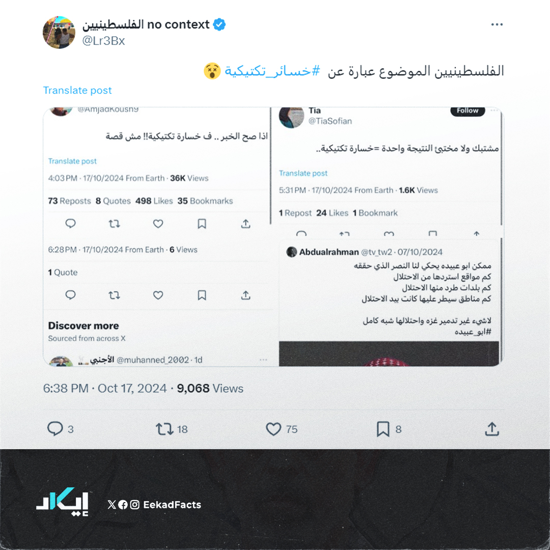 🔻خلال تتبعنا للحملة المناهضة للسنوار، رصدنا حسابات تدّعي الهوية الغزاوية، تروّج لمزاعم بفرحة سكان القطاع باستشهاده.