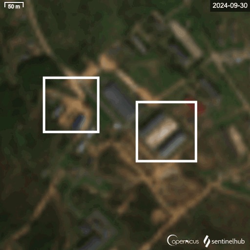 كما تتبع فريق “إيكاد” عبر صور الأقمار الصناعية الذي وفرها Sentinel Hub لشهرَي سبتمبر وأكتوبر مراحل تطور الموقع الجغرافي الذي ظهر به الجنود “الكوريون” في الثكنة العسكرية الروسية، فوجدنا تغييرات وحركة يُرجح ارتباطها بجنود ومركبات عسكرية بالموقع.