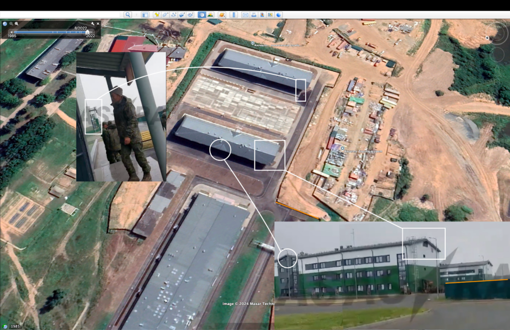 حيث قارن فريق “إيكاد” لقطات الأبنية التي ظهرت بالمقطع المصور، مع صور الأقمار الصناعية للثكنة العسكرية الموجودة بقرية سيرجيفكا، في إقليم بريمورسكي القريب من حدود روسيا مع كوريا الشمالية، فكانت متطابقة تماما؛ كما أظهرت صور الأقمار الصناعية أن هذه الثكنة العسكرية قد ظهرت لأول مرة على الخرائط في منتصف عام 2022.