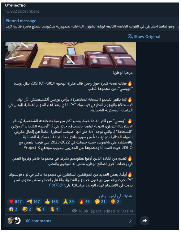 إذ بدأت حملة التجنيد في يوم 20 فبراير 2024، و استمرت عبر القناة خلال الأيام التالية، وفي يوم 25 مايو 2024، ثبتت القناة منشور الحملة بشكل دائم، ثم في 27 مايو ظهر إعلان التجنيد على قناة روسية أخرى على منصة “تلغرام”.