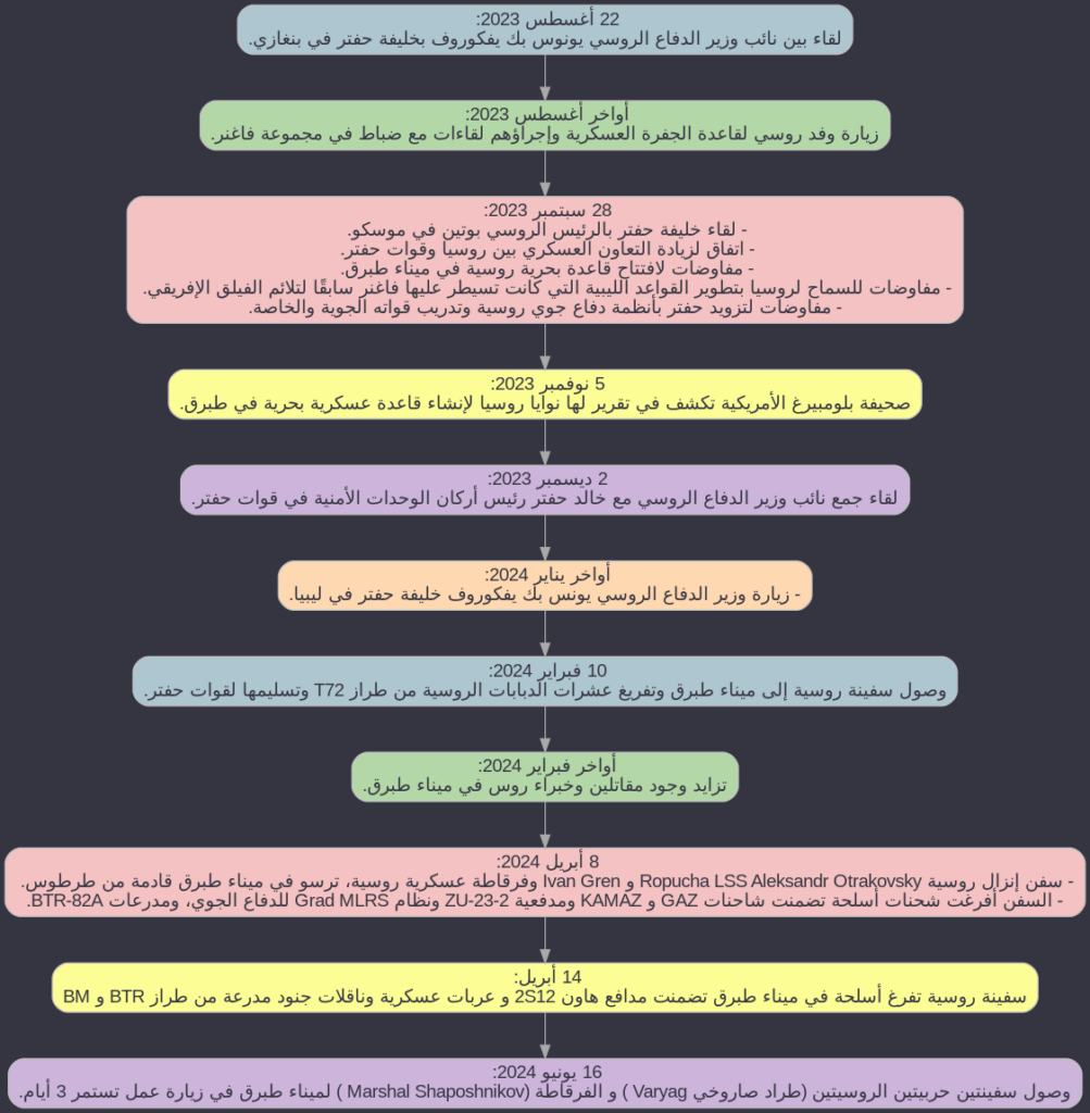 المخطط الزمني لمفاوضات إنشاء القاعدة البحرية الروسية في طبرق، و الأنشطة التي شهدتها القاعدة منذ دخولها الخدمة