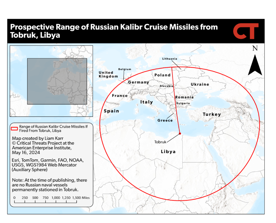 مدى صواريخ كاليبر الروسية المجنحة من قاعدتها في طبرق