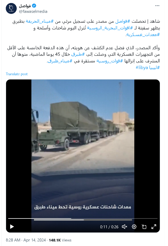 غير أن تلك السفينة لم تكن السفينة الروسية الأخيرة التي تصل لرصيف ميناء قبرص، فقد تبعها في أبريل 2024 سفينة الإنزال الروسيةRopucha LSS Aleksandr Otrakovsky وسفينة Ivan Gren التي شوهدت برفقة الفرقاطة العسكرية الروسية Mercuriy ترسو في ميناء طبرق وتُفرغ شحنات ومعدات عسكرية أكثر من مرة.