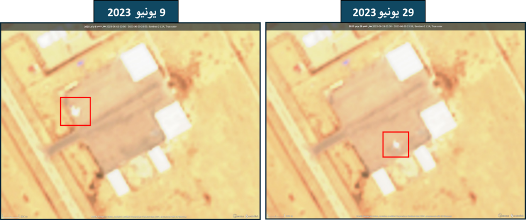 وبعد هذا النشاط الجوي المكثف، حل بالقاعدة فترة سكون مؤقت خلال شهر مايو 2023، لكن سرعان ما عادت الرحلات بوتيرة أقل في الشهر الذي تلاه، فقد وثّق فريق إيكاد عبر صور الأقمار الصناعية قدوم رحلتين فقط خلال شهر يونيو، وقد كشفت الصور وجود طائرة من طراز Il-76D مرتين على المهبط الرئيسي في مكانين مختلفين على ساحة المهبط الرئيسي.