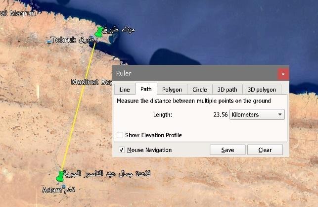 المسافة بين ميناء طبرق وقاعدة عبد الناصر الجوية