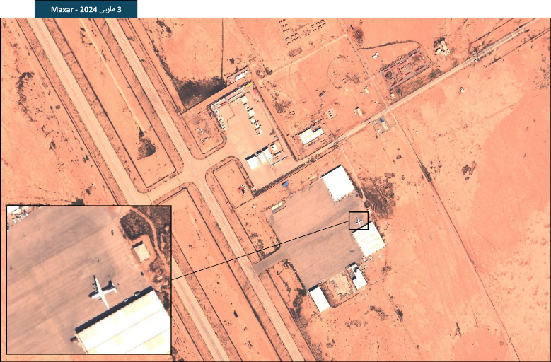 ثم انقطعت الرحلات الجوية عن القاعدة، مرة أخرى، حتى يوم13 مارس، التاريخ الذي ظهرت فيه طائرة من طراز IL76D في ساحة مهبط القاعدة، ثم تكرر ظهور طائرة من نفس الطراز في 30 مارس، وقد أظهرت الصور المُلتقطة بتاريخ 2 أبريل 2024، أي بعد ثلاثة أيام فقط من آخر ظهور لطائرة IL-76D خلوّ القاعدة من أي طائرة ما يعني أنها غادرتها خلال هذه الفترة الوجيزة.