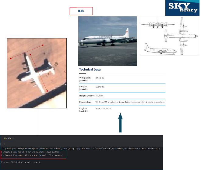 صُورة تُظهر تحليل أبعاد طائرة IL-18 باستخدام تقنيات التحليل البصري المتقدمة