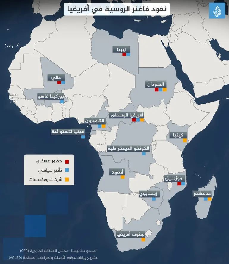 المناطق التي تنشط بها مجموعات فاغنر بحسب التلغراف