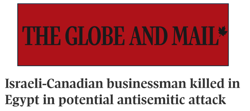 وبعد بث المقطع المصور لعملية قتل رجل الأعمال الإسرائيلي بمدينة الإسكندرية، أكدت الخارجية الإسرائيلية حادثة القتل بحسب ما نقلته رويترز عن المتحدث باسم الخارجية الإسرائيلية. (1) كما جاء تأكيد آخر من طرف المتحدث باسم وزارة الدبلوماسية الحكومية الكندية بحسب ما نقلته الـ BBC (2) ولم تمض ساعات حتى أذاعت وسائل إعلام عربية وإسرائيلية وأجنبية أخرى أنباء أشارت فيها إلى “مقتل مواطن كندي إسرائيلي” في الإسكندرية مقيم في مصر منذ تسع سنوات، وقد أضافت بعض وسائل الإعلام بأنه حامل للجنسية الأوكرانية أيضًا.