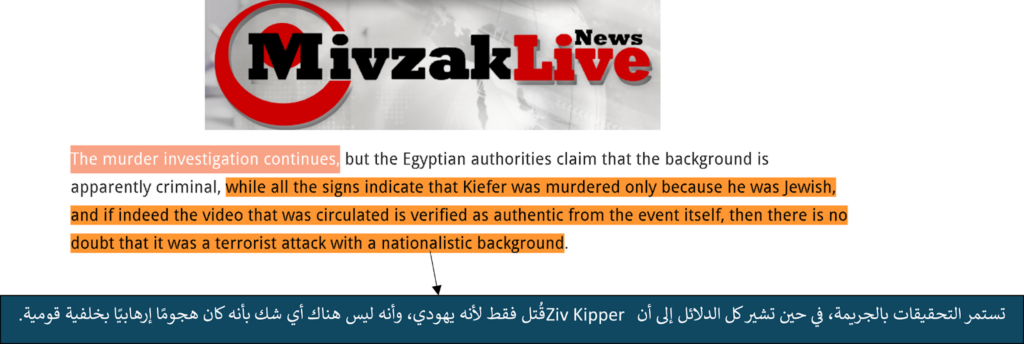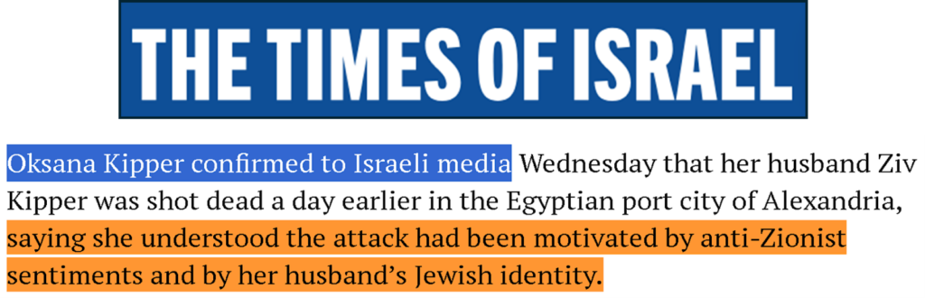 بالتزامن مع هذه السردية التي نشرتها مجموعة “طلائع التحرير” كما أطلقت على نفسها، نشرت عدة جرائد إسرائيلية وغربية مقالات دعمت فيها سردية أخرى تشير إلى أن رجل الأعمال الإسرائيلي Ziv Kipper قُتل في مصر لأسباب تتعلق بمعاداة السامية، ولأنه يهودي أو حامل للجنسية الإسرائيلية، في نفي غير مباشر للمزاعم المتعلقة بارتباطه بالحكومة والجيش الإسرائيلي، ومن بين الصحف التي سوّقت ودعمت هذه الرواية كُلٌّ من The Globe and Mail(3)و Mivzak Life (4)و Jewish News Syndicate (5)و The Times Of Israel (6)و Cleveland Jewish News (7)وغيرها.