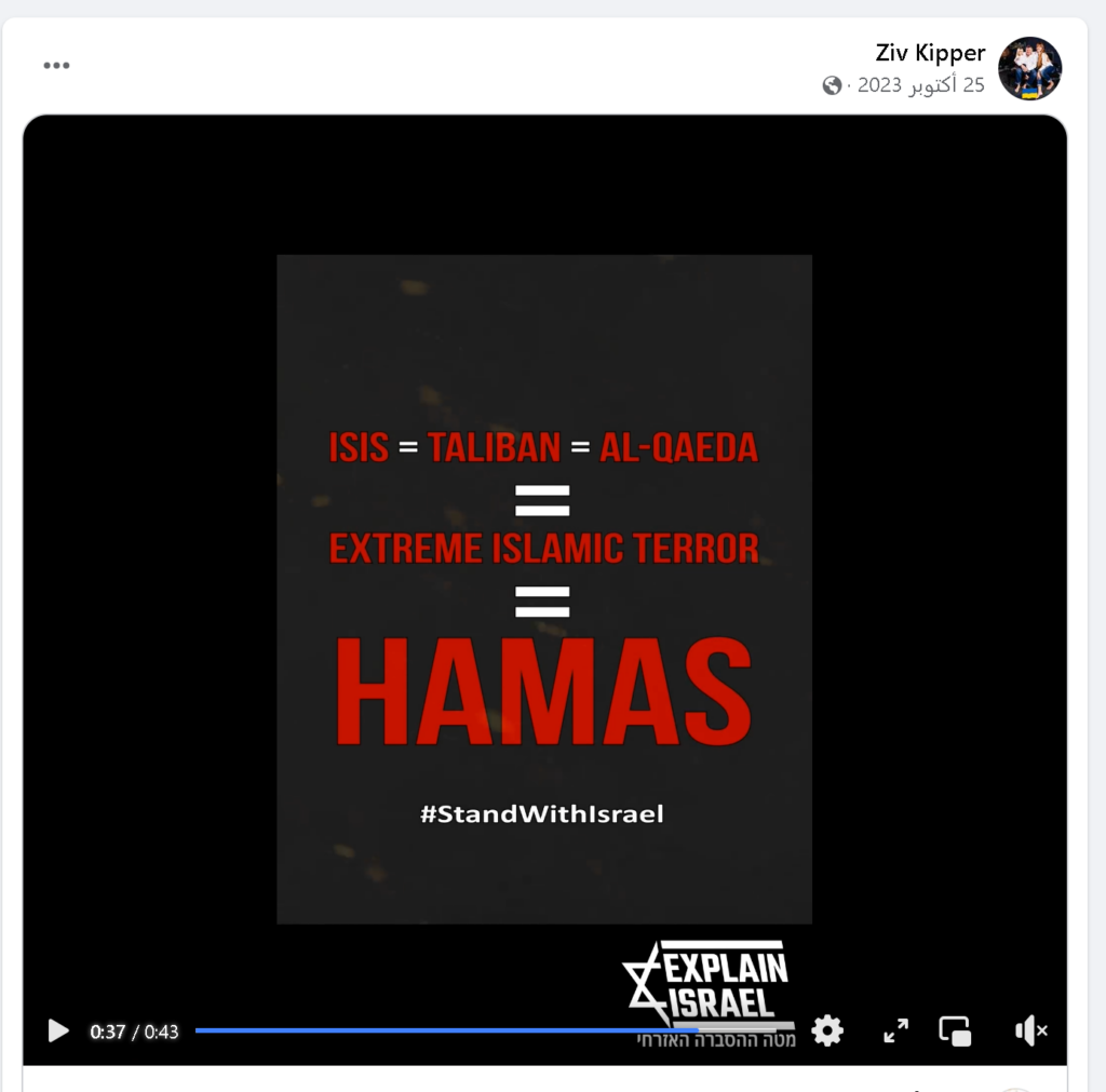 وبمراجعة أرشيف حساب Ziv Kipper على منصة التواصل الاجتماعي “فيس بوك”، لا سيما بعد معركة طوفان الأقصى في السابع من أكتوبر 2023 وحتى مايو 2024، وجدنا أنه قام بنشر العديد من المنشورات التي تصف حماس ب”الإرهاب”، والتي يدعم فيها الحرب الإسرائيلية على غزة، ويؤيد استهداف المستشفيات والمراكز الصحية فيها.
