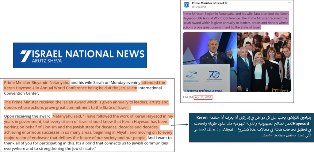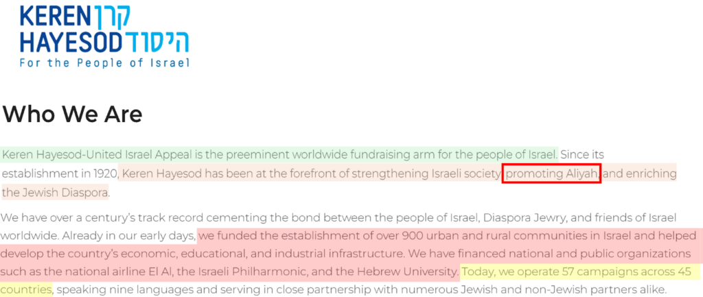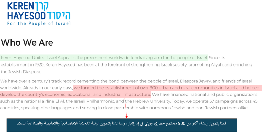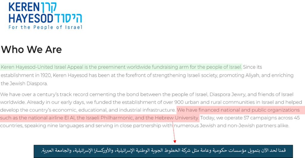الأنشطة الصهيونية لمنظمة Keren Hayesod-UIA