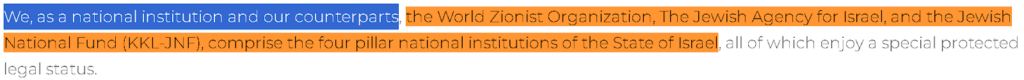 وقد عرّفت المنظمة نفسها على موقعها الإلكتروني بأنها “ذراع إسرائيل الأبرز” حول العالم لجمع التبرعات لصالح إسرائيل، وأنها الداعم الأول لمشروع Aliyah أو “عليا” باللغة العربية، ويعني “هجرة اليهود من دول الشتات إلى الأرض الموعودة لليهود إسرائيل”، حسب منظمة “Jewish Souls United” الصهيونية، والمتخصصة بتنسيق هجرة اليهود من كندا وأمريكا إلى إسرائيل.