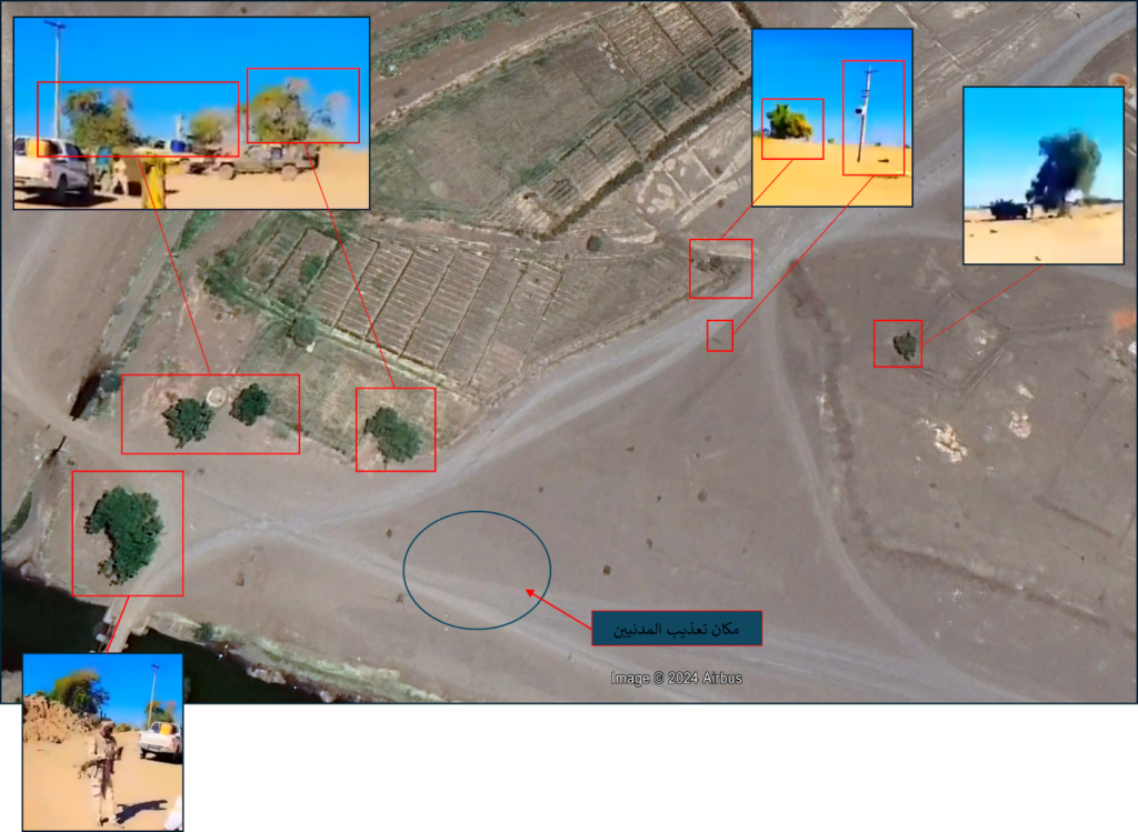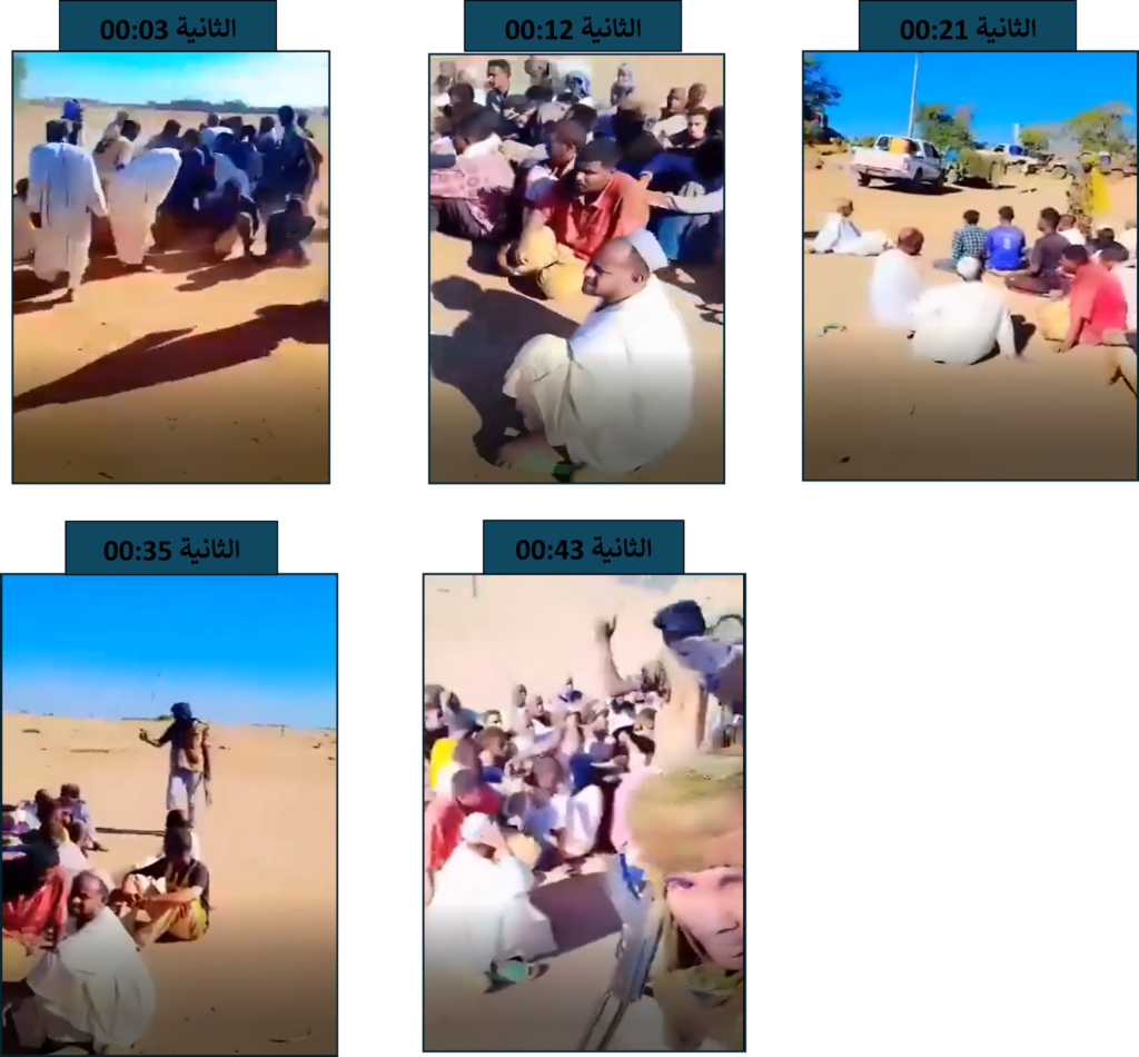 وعليه، توصل الفريق إلى أن قوات الدعم السريع -كما ظهر في الفيديو الأول- قتلت وجرحت عددًا من المدنيين واحتجزت آخرين، ثم اقتيدوا بعد ذلك إلى مشارف القرية وتعرضوا للتعذيب والضرب، كما ظهر في الفيديو الثاني.