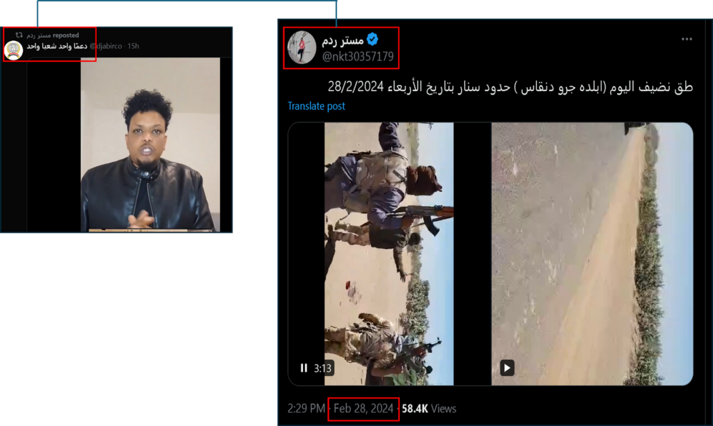 وكانت البداية من تغريدة نشرها حساب أحد الإعلاميين المناصرين لقوات الدعم السريع، في 28 فبراير/ شباط 2024، تضمنت مقطعًا مسجلًا وخبرًا يفيد بلوغ القوات حدود ولاية سنار، الواقعة جنوب ولاية الجزيرة.