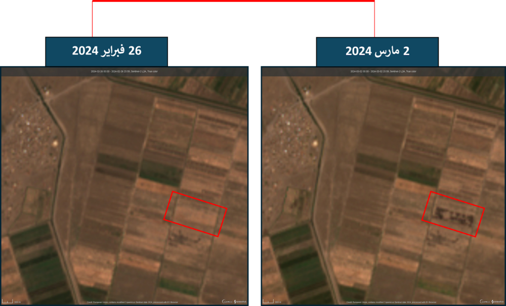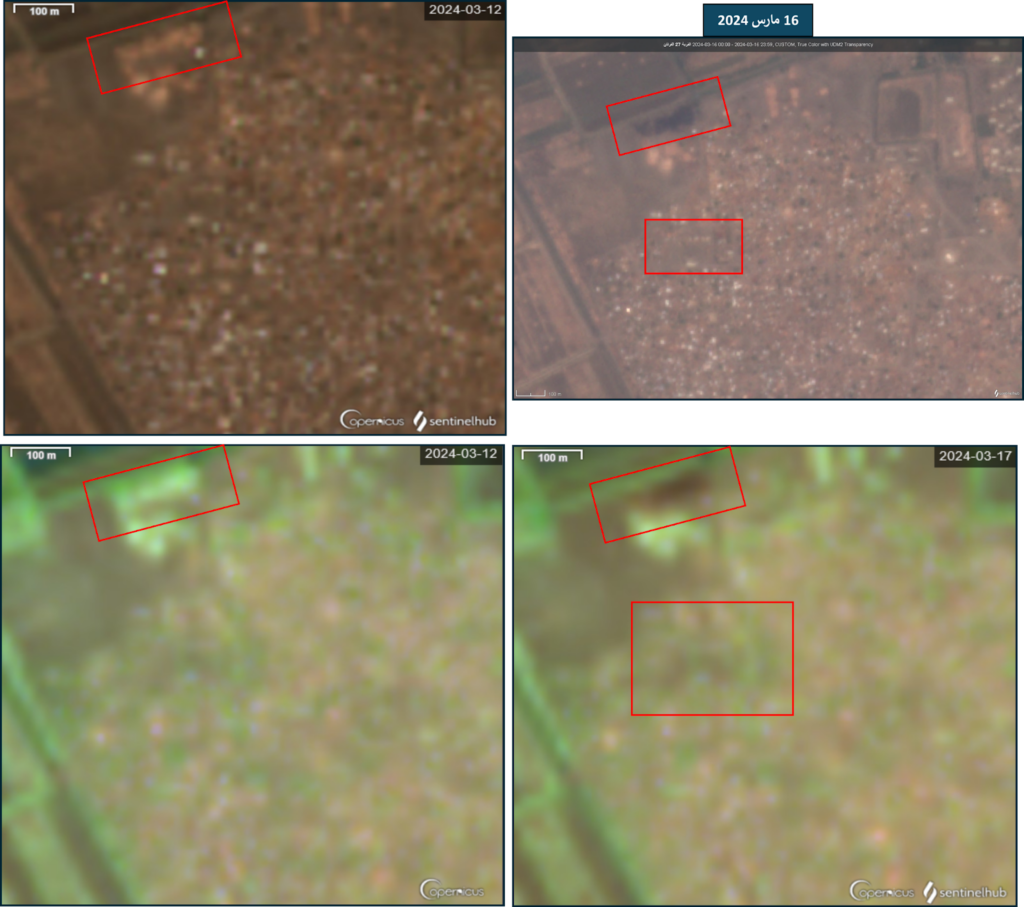 نفس المشهد تقريبًا تكرر في “القرية 27 الفرقان”. إذ رصدت المستشعرات وجود حرائق في 14 و15 مارس/ آذار 2024.