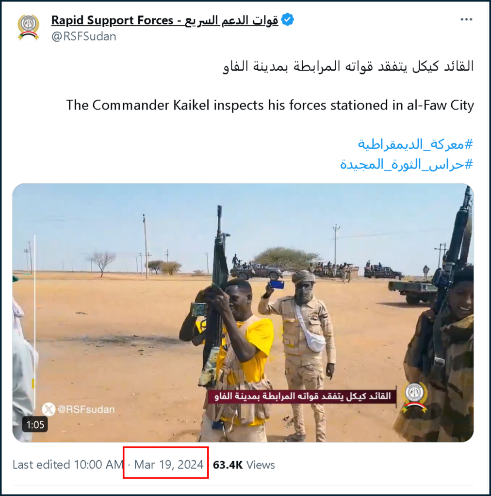 وعند مراجعة الأحداث الميدانية في المنطقة خلال تلك الفترة، تبين أن قوات الدعم السريع شنت هجمات على منطقة الفاو المحاذية للقرية 27 من الجهة الشرقية.