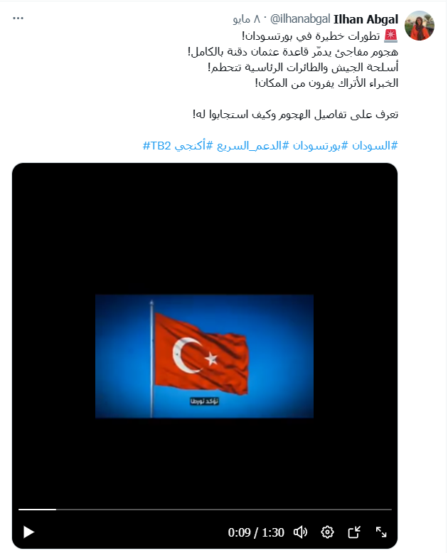 حيث وجدنا حسابات الشبكة الوهمية -الصومالية- تتبنى خطابًا يهاجم الجيش السوداني، ويناهض الدور التركي الداعم له.