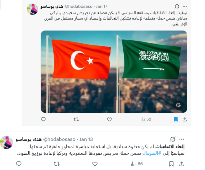 حيث اعتبرت أن إلغاء الاتفاقية خطوة “تضر أمن الصومال واستقراره”، مروجة في الوقت نفسه لسردية تربط القرار بضغوط أو توجيهات من السعودية وتركيا.
